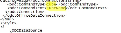 NOW, go to this datasource location, by default it will be under Libraries\Documents\My Data Sources. There would be a .ODC file. Open with / Edit this in notepad by right clicking on .odc file.